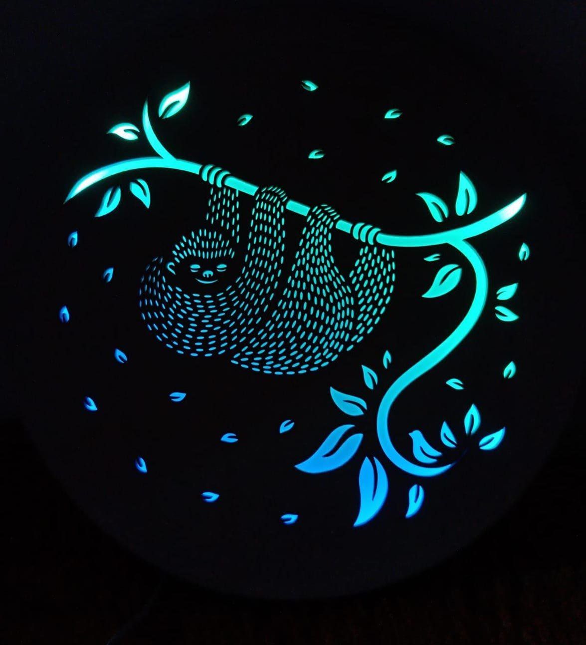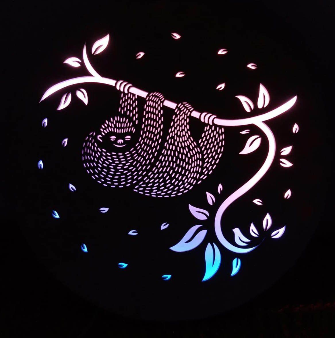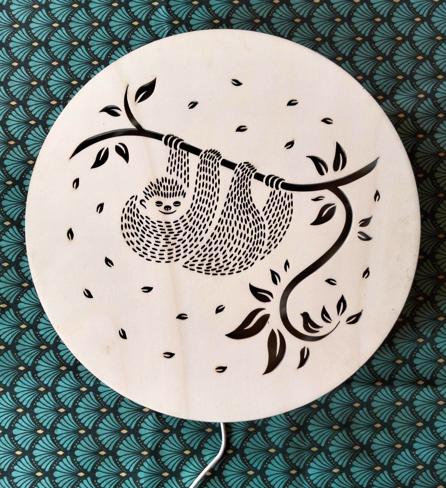 Luminaire d'ambiance en bois de peuplier, diamètre 35 cm, ruban led RVB avec une télécommande, une attache au dos pour pouvoir accrocher la lampe sur le mur.